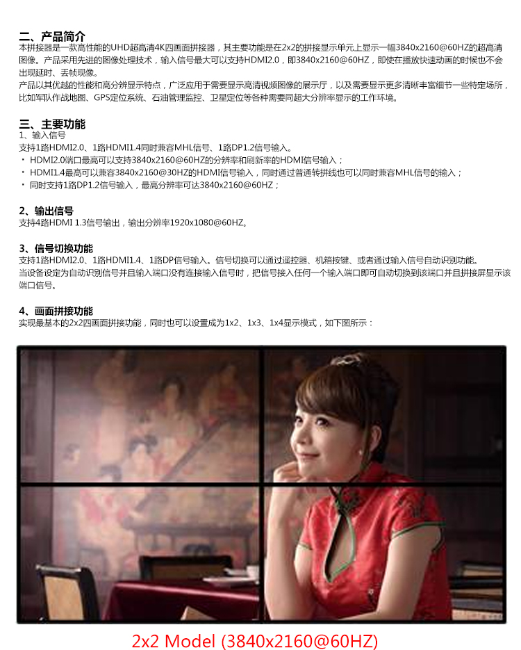 【深圳市美佳愛(ài)-矩陣切換器,視頻拼接處理器生產(chǎn)廠家電話400-997-9971】高清4K電視機(jī)拼接盒產(chǎn)品通過(guò)ISO9001_3C認(rèn)證,專(zhuān)業(yè)提供LED視頻處理器,監(jiān)控音視頻矩陣切換器,DVI/SDI/RGB/HDMI/VGA混合矩陣,外置拼接處理器,視頻服務(wù)器,云處理器,液晶大屏幕處理器,視頻分配器,網(wǎng)絡(luò)高清數(shù)字解碼矩陣主機(jī)生產(chǎn)廠家,高品質(zhì),穩(wěn)定性強(qiáng)的產(chǎn)品和服務(wù),提供報(bào)價(jià)方案,價(jià)格/施工安裝售后維修等